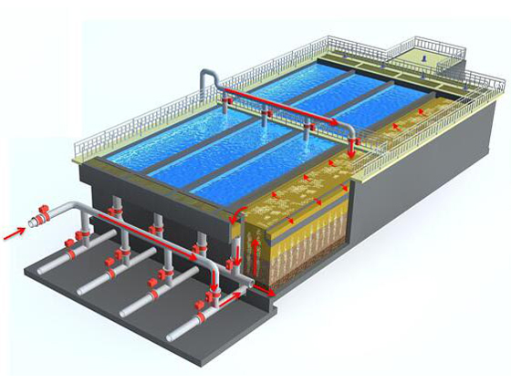 1、革新的濾池底部布水布氣系統,解決了濾池堵塞問題、配水不均勻問題、曝氣系統易損壞且曝氣不均勻問題。