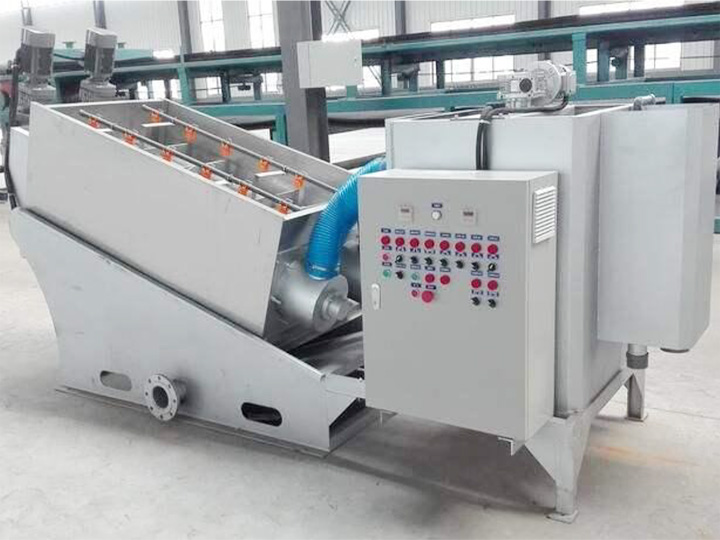 1、 脫水機的主體是由固定環和游動環相互層疊,螺旋軸貫穿其中形成的過濾裝置,前段為濃縮部,后段為脫水部。