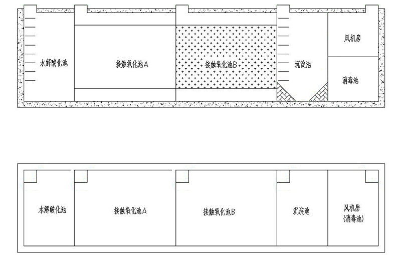 反應池采用了生物觸氧化法,僅需三個月(90天)左右排一次泥(用糞車抽吸或脫水成泥餅外運)。